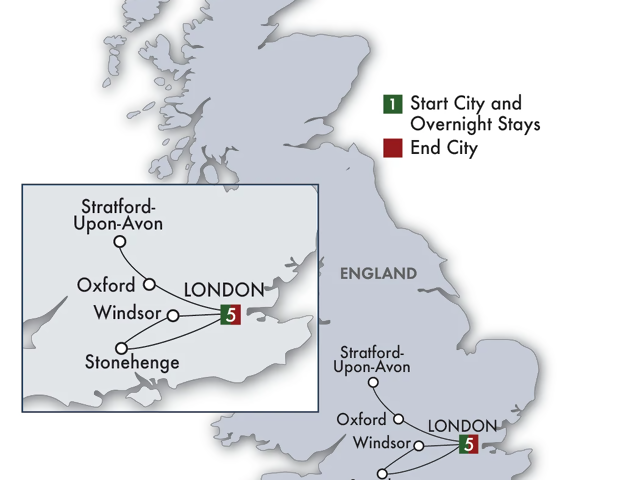 Explore Oxford on a guided walking tour of the city and the famed university, founded in the 12th century. Next, drive through the rolling hills of the Cotswolds, past charming thatched-roof cottages and English gardens along the route to Stratford-upon-Avon. Enjoy free time for lunch before visiting Shakespeare’s Birthplace, a museum exploring The Bard’s early years and life in the 16th century. Return to London, where you are free to explore as you wish for the evening. (B)