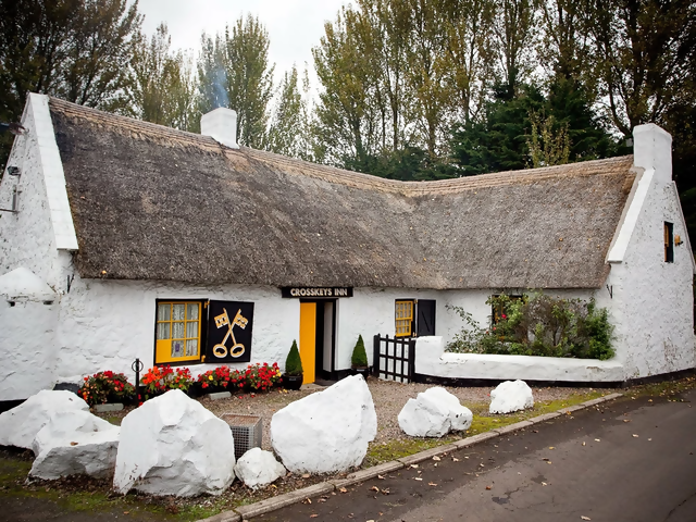 - Cozy up by the fire under the thatched roof of Crosskeys Inn. This atmospheric, stone-walled pub, a CIE Tours Exclusive, dates back to 1654.
