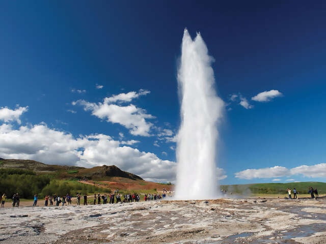 Discover Reynisfjara’s black sand beach and rock formations along with the legends of its history. Visit the nearby Skógafoss Waterfall, where on sunny days a double rainbow is often visible. Journey to the beautiful Seljalandsfoss Waterfall where, weather permitting, the sure-footed can walk the trail behind the 60-meter falls. Then admire the distinctive Icelandic horse in a demonstration at Eldhestar Horse Farm. All Icelandic horses are descendants of those brought by the Vikings and are known for their surefootedness and their extra gait, the “tölt.” At your hotel in Reykjavik, celebrate a farewell dinner with your group. (B, D)