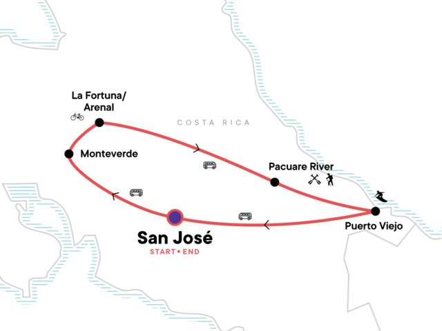 Your Discover Moment: Puerto Viejo de Talamanca. Overnight Pacuare River rafting trip. Guided hike (Pacuare River). Guided cycling excursion (La Fortuna). Bike ride (Puerto Viejo). All transport between destinations and to/from included activities.