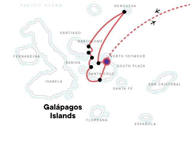 Flights to either of the airports in the Galapagos leave early in the morning on Day 2 and get you into the islands in the early afternoon. Flights back to the mainland depart between 10:00am and 1:30pm arriving in the early evening.