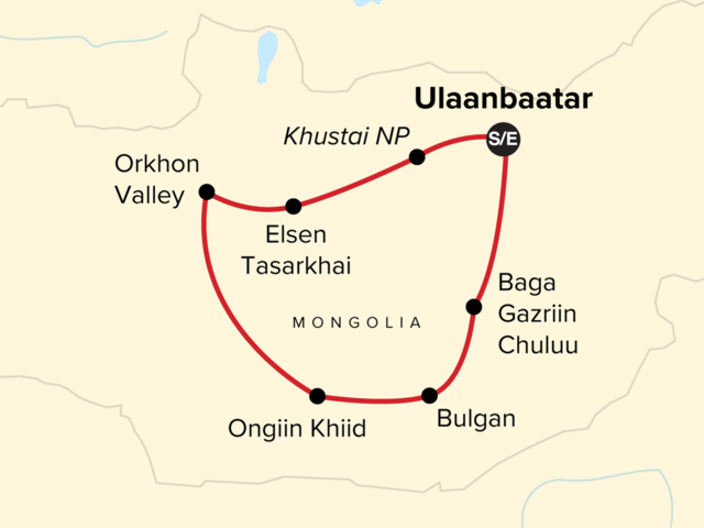 Your Welcome Moment: Welcome Moment - Meet Your Expedition Leader and Group. National Museum of Mongolia Visit & Tour. Nalaikh Village Family Ger District Lunch. Genghis Khan Monument Visit. Gandan Monastery Guided Tour. Zorgol Khairkhan Mountain & Picnic Lunch. Baga Gazriin Chuluu National Park Hike. Yolyn Am Visit. Moltsog Els Sand Dunes. Free time in Bulgan, Elsen Tasarkhai. Flaming Cliffs Visit. Ongiin Khiid and Hoshuu Monasteries Visit. Orkhon Waterfall Hike. Mongolian Dumpling (Buuz) cooking class. Khorkhog (Mongolia Traditional BBQ). Erdene Zuu Monastery. Karakorum Museum. Uvgun Monastery Hike. Khustai National Park (Khustain Nuruu) Visit. Mongolian Cultural Show. Arrival Transfer. All transport between destinations and to/from included activities