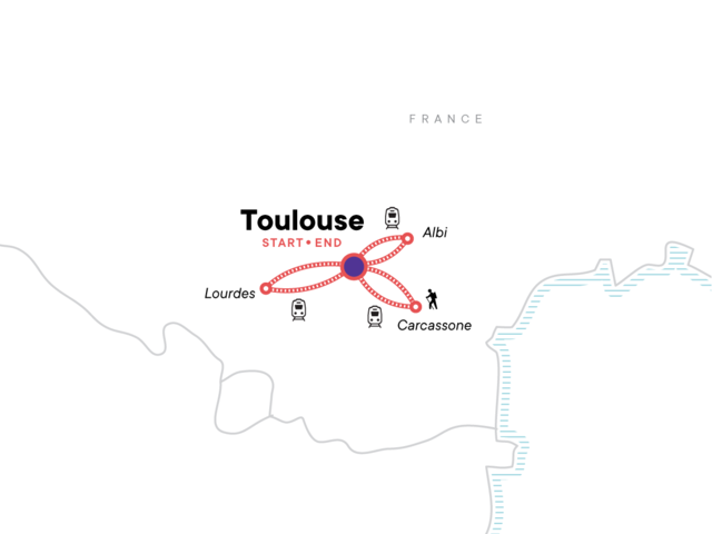 Stroll the sun-soaked streets of Toulouse and discover why it’s called the Pink City, Explore the medieval hilltop fortress of Carcassonne and take in the panoramic views, Visit Lourdes a place of pilgrimage and quiet reflection, Wander the UNESCO-listed town of Albi known for its stunning cathedral and artistic legacy