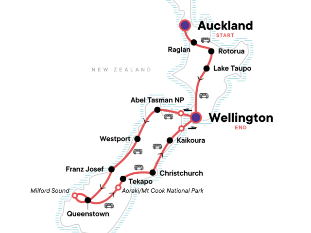 Reminisce and reflect on your time in New Zealand as you and the group travel to Picton to catch a ferry back to Wellington. Watch the majestic scenery of this country unfold before you and simply appreciate the moment (we know you’re probably already making plans to return.) Once back in the city grab some grub with your travel crew and let the good times roll for one last night out together in New Zealand.