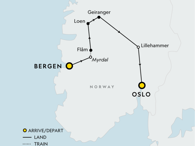 Explore Norway's spectacular geography from the ‘Gateway to the Fjords’ in Bergen to the high mountains of Geiranger and the capital, Oslo. This 10-day tour features exclusive access to scientific research, a famous high-mountain railway, community farming, and unforgettable dining with panoramic views.