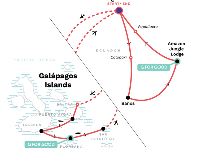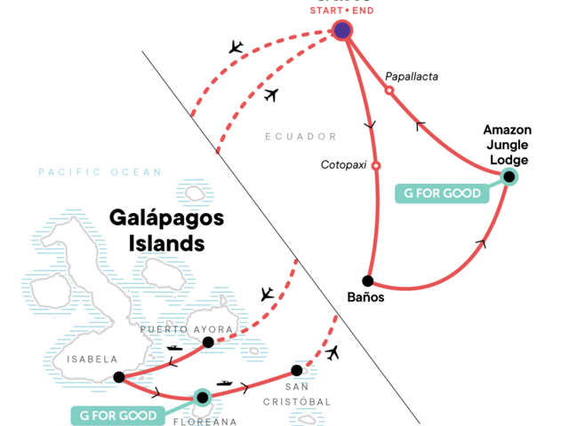 Me Day: Isabela Me Day, Isabela Island. Complimentary arrival transfer. Shandia Community Walk, Cacao Plantation Visit, & Chicha Tasting. Amazon Jungle Walk & Pimpilala Waterfalls Visit. Papallacta hot springs visit and soak. Visit to the highlands of Santa Cruz. Charles Darwin Research Station tour. Ceo-led activity to visit the Breeding Center and Flamingo lagoon. Black Beach visit and hands-on cocktail activity. Visit to the San Cristobal Interpretation Centre. Free time in Baños, the Amazon, Isabela, and San Cristobal. Internal flights. All transport between destinations and to/from included activities.